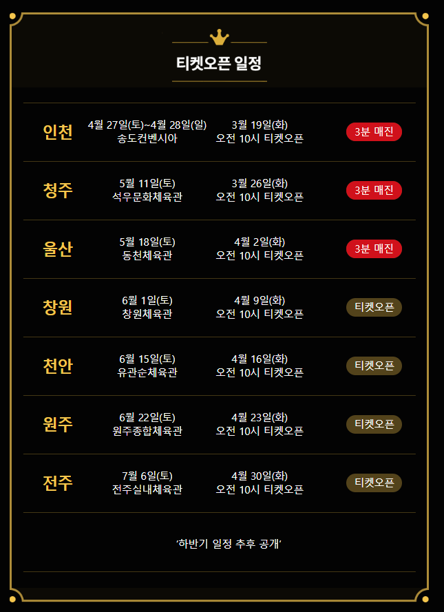 인천을 시작으로 청주 울산 창원 천안 원주 전주의 순서로 콘서트는 마무리 됩니다.