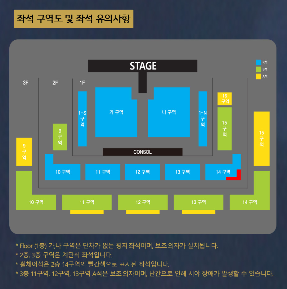 휠체어석은 전화를 통하여 예매해야 합니다.( 1544-6399)