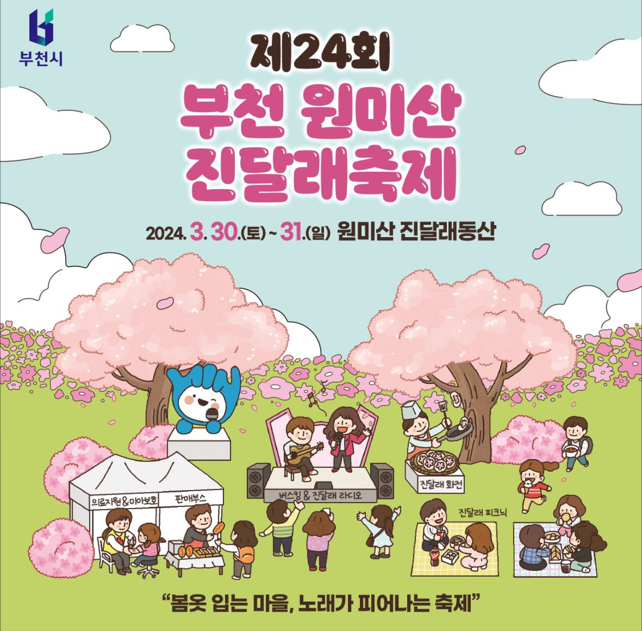부천 원미산 진달래 축제는 원미산의 진달래꽃을 소재로 하여