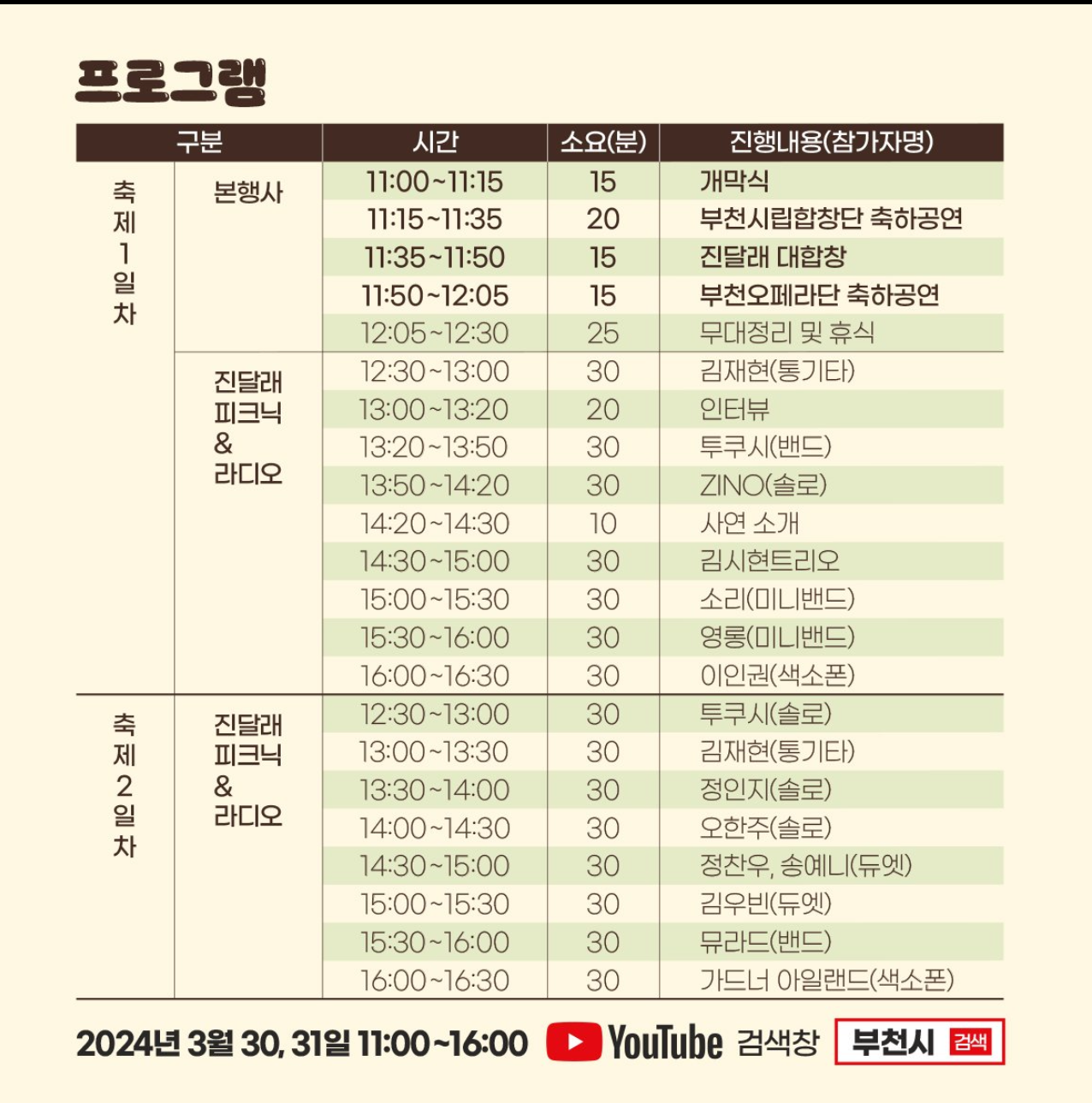 24회 부천 원미산 진달래 축제 프로그램