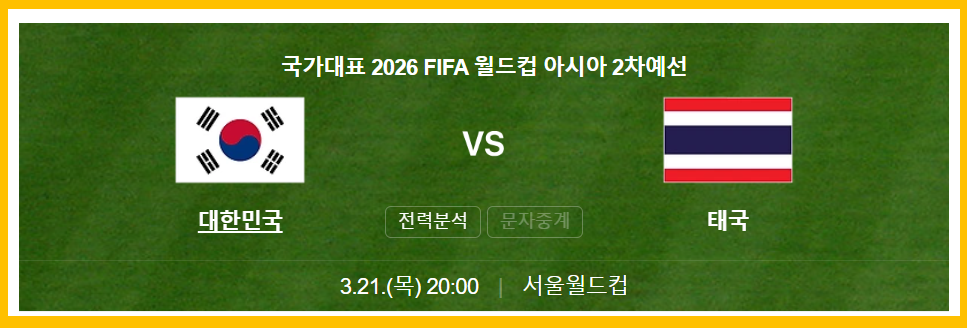 2026 FIFA 월드컵 아시아 지역 2차 예선 3월 21일 (서울 홈) 대한민국 vs 태국