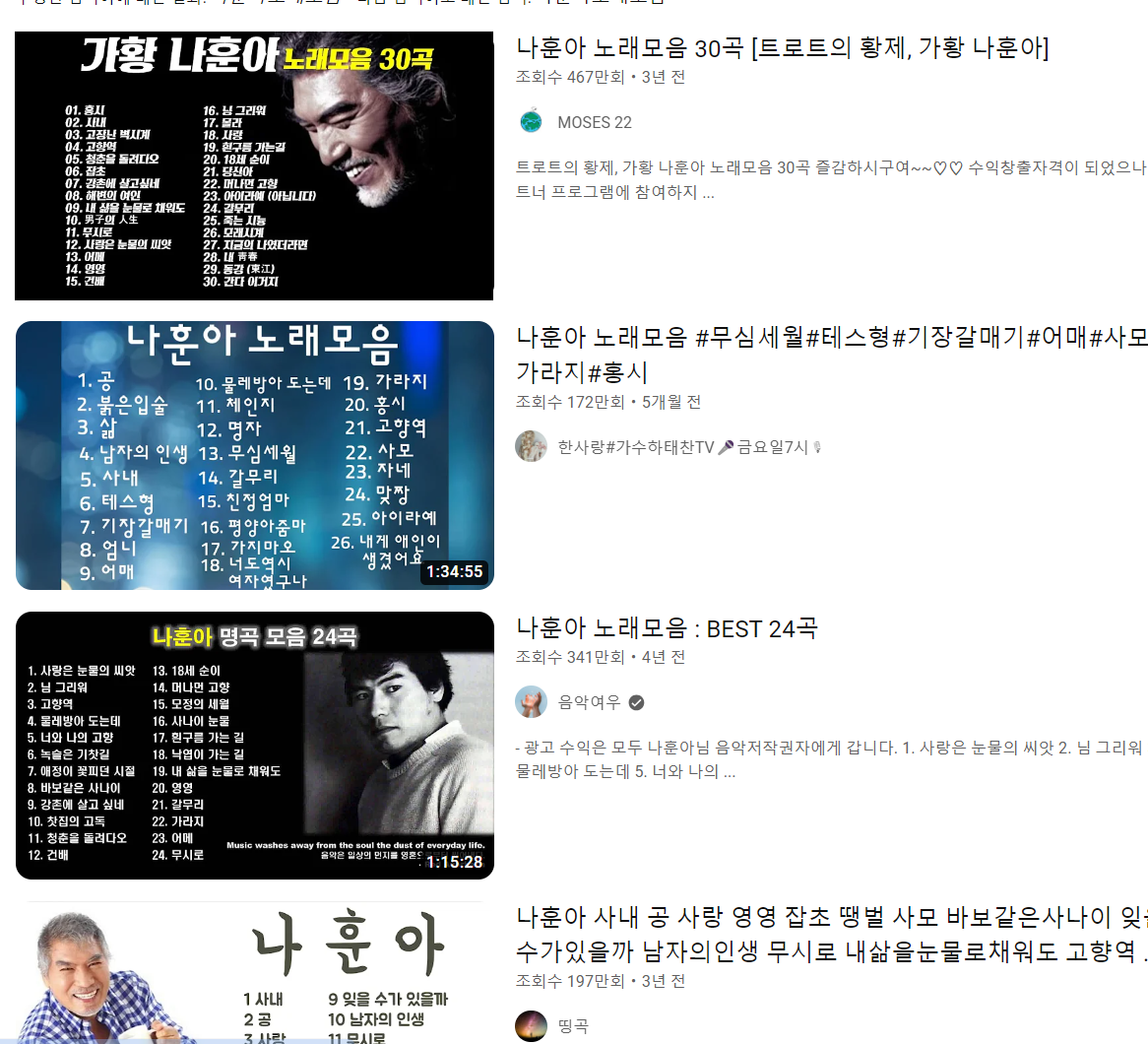 나훈아 노래 모음 듣기