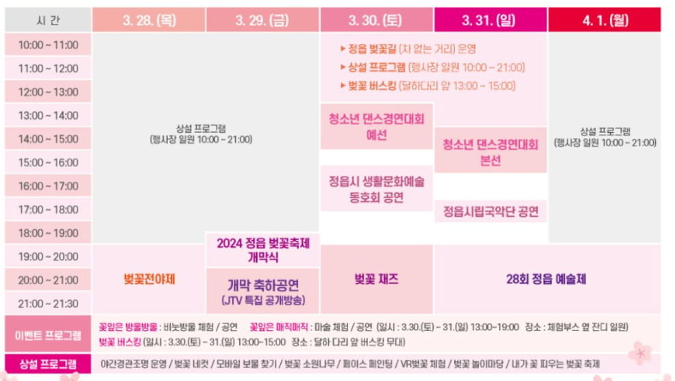2024 정읍 벚꽃 축제 행사 가수 날짜 주차 정보