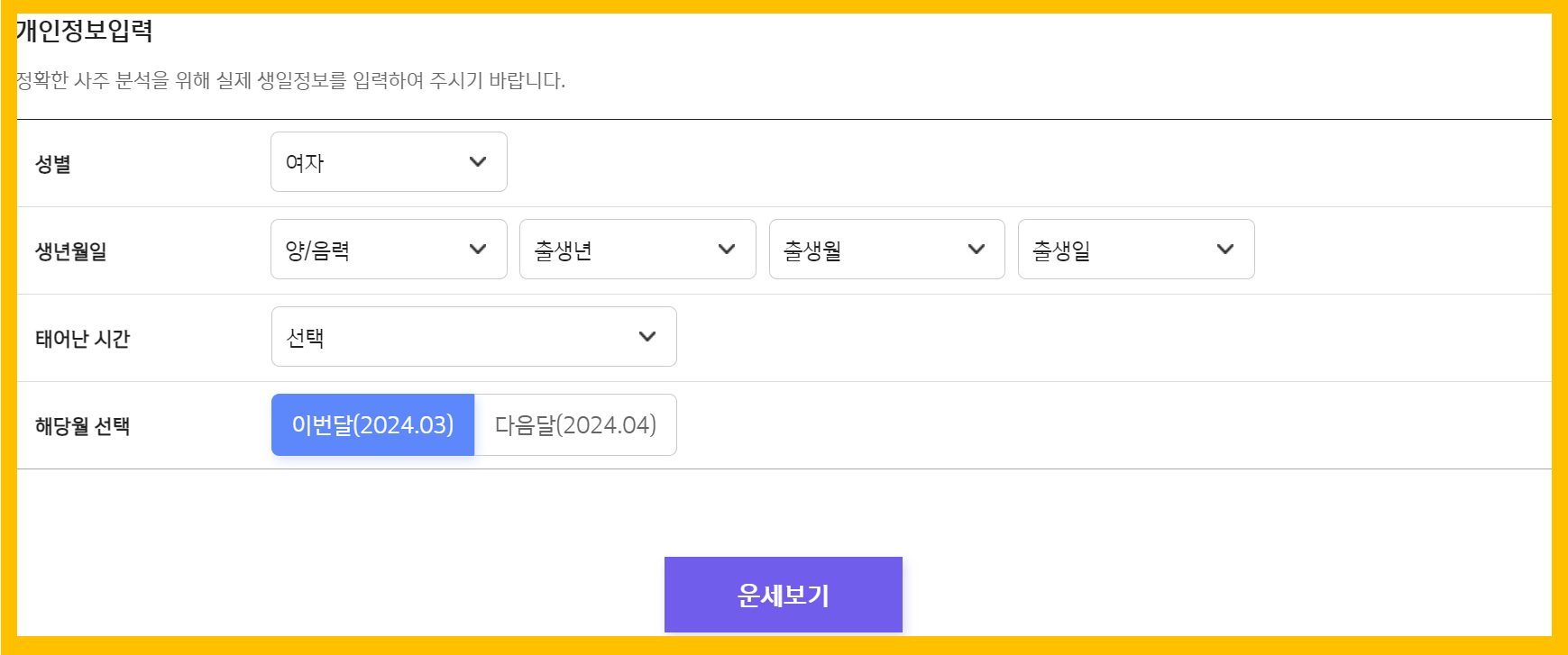 사주정보를 입력하면 바로 결과를 볼 수 있습니다.