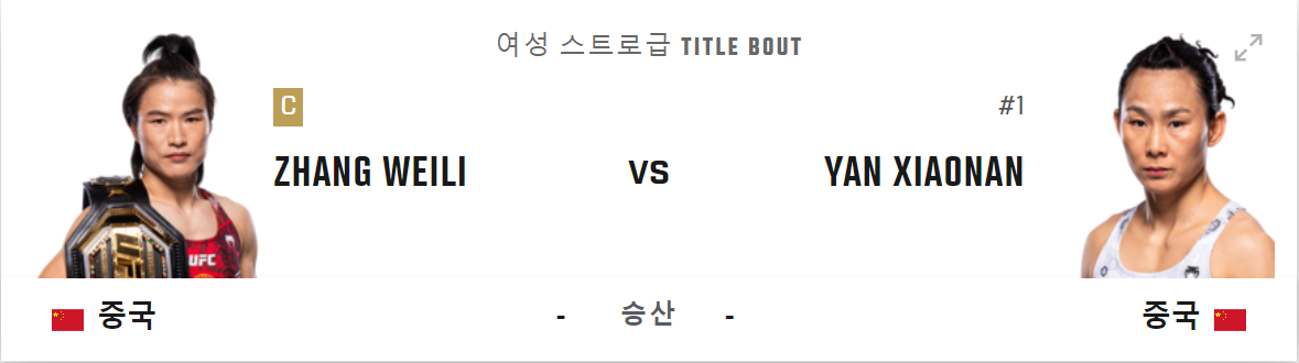 네 번째 경기는 장 웨일리가 여자 스트로급 타이틀을 방어합니다.